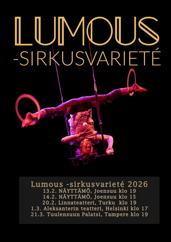 Vuoden 2026 Lumous-sirkusvarietén elävästä musiikista vastaa Talvi-Maaria Turunen ja sirkusesiintyjinä on mukana maailman tunnetuimmissa sirkusryhmissä ja varieteissa työskennelleitä taiteilijoita. Tule ja nauti. Tätä et halua jättää kokematta!